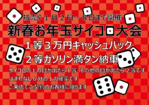 新春お年玉サイコロ大会を実施いたします!