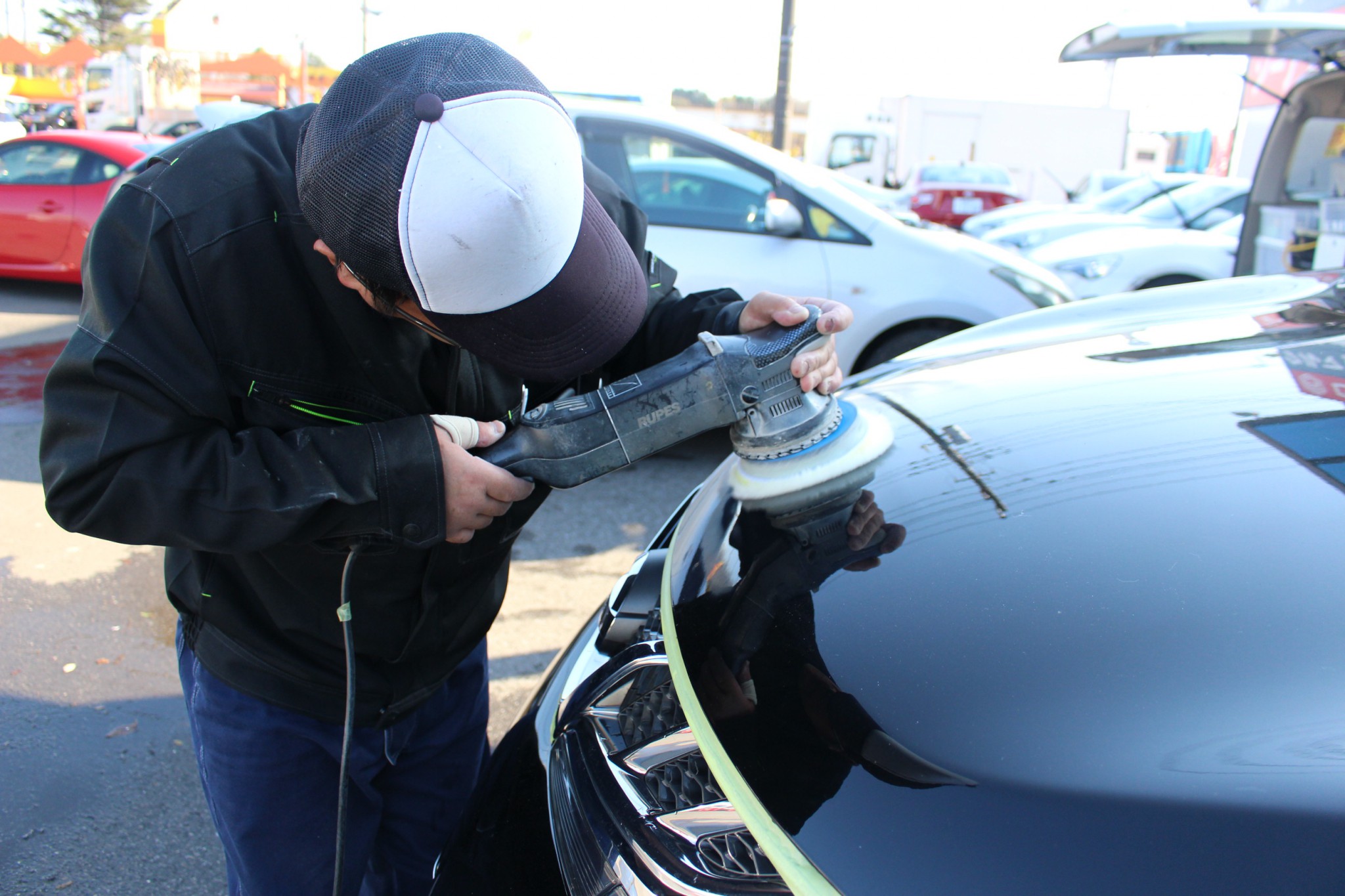 これはポリッシャーでボディに磨きをかけているところです。